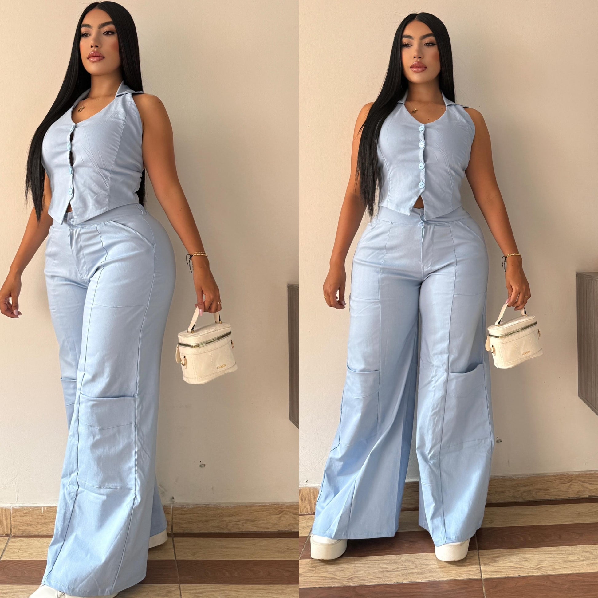 Duo palazo DM de tela bengalina, talla única, excelente calidad. Detalles impecables y ajuste perfecto, ideal para cualquier ocasión.